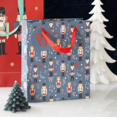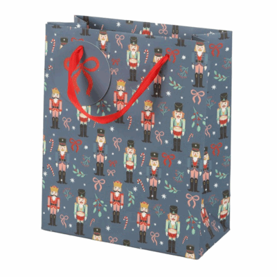 Make gifts even more magical with this 23cm gift bag, featuring a festive nutcracker, bows, candy cane, and holly design. Perfect for presenting Christmas surprises, this gift bag is ideal for wrapping present for loved ones and for Secret Santa exchanges.