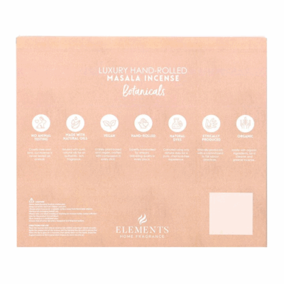 This set of incense holds 6 varieties of hand-rolled masala incense stick scents made from ethically produced oils, dyes and organic ingredients for a clean and fragrant burn. Fragrances include Delicate Lavender, Romantic Wild Rose, Indulgent Vanilla, Sweet Jasmine, Earthy Patchouli and Woody Sandalwood. Set includes 84 incense sticks total, 14 in each fragrance pack. Vegan and cruelty-free.