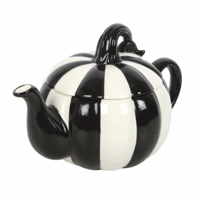 Serve tea with a touch of the extraordinary using this black and white striped pumpkin teapot. Its spooky yet elegant design makes it a perfect choice for Halloween gatherings or quiet evenings with a unique twist. Pair it with a matching mug for a truly distinctive set that’s sure to stand out in any kitchen. 500ml capacity. Food safe. Hand wash only. Do not microwave.
