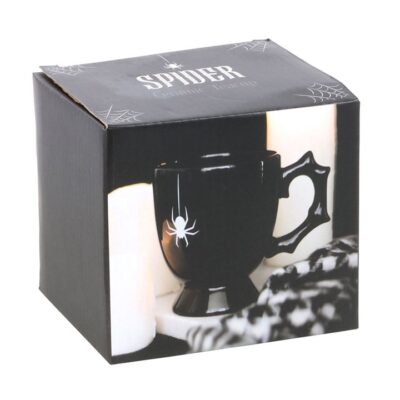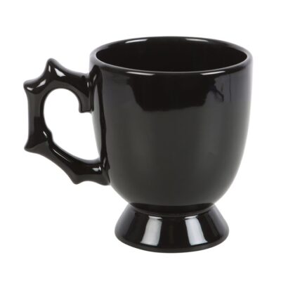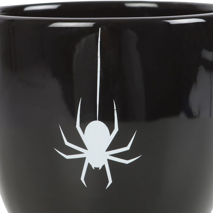 Show off your soft and delicate side with this gothic style teacup. Featuring a thorny black handle and printed spider accent, this eerily elegant cup will stand out at your next dark soirée. 400ml. Do not microwave. Handwash only.