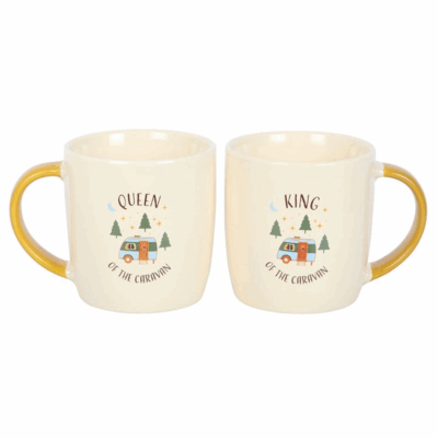 This couples’ mug set is the perfect gift for camping enthusiasts or keeping on-hand for grand outdoor adventures. Each mug features a charming caravan scene and ‘Caravan King’ or ‘Caravan Queen’ text. 400ml capacity. Microwave and dishwasher safe.