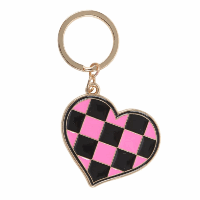 Make a statement with this checkerboard heart keyring in bold black and pink. Clip it to keys, zips or backpacks for a daily dose of Y2K pop-punk nostalgia.