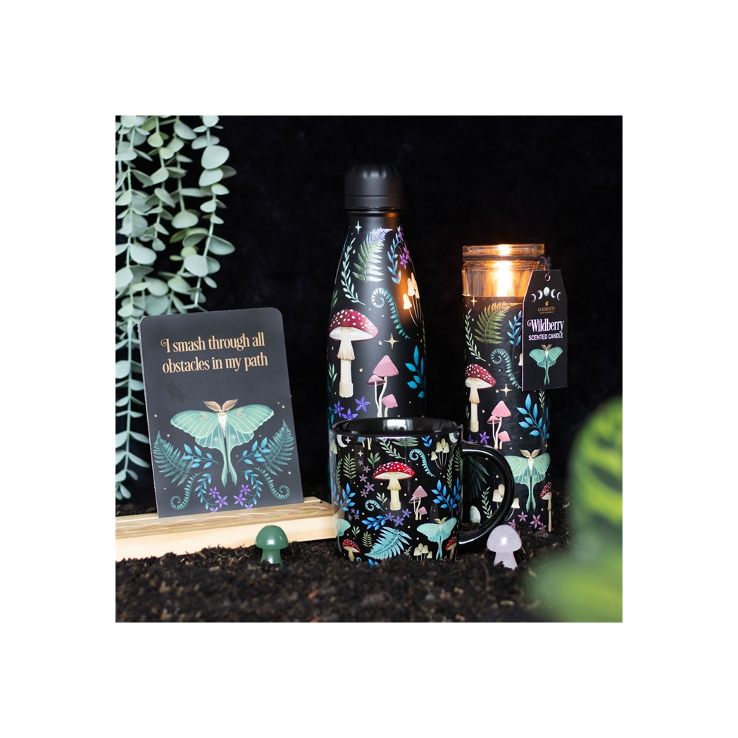 This black metal water bottle makes a great eco-friendly replacement for plastic and features a mystical forest print inspired by magickal plants. This item features a convenient screw-top lid to prevent accidental spills. 500ml capacity. Hand wash only. Do not microwave. Suitable for hot or cold beverages. BPA free.