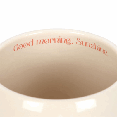 Start every morning with a bright burst of energy with this cute mug. Featuring a cheerful yellow boho sun design and the uplifting phrase “Good morning, Sunshine” printed on the inner rim, this mug will add sunshine to every sip. 500ml capacity. Dishwasher and microwave safe.
