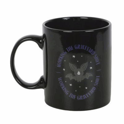 Stay caffeinated through the witching hour with this eerie ceramic mug, featuring a hauntingly fun design. A must-have for night owls or anyone who appreciates an alternative, spooky style. 450ml. Suitable for microwave and dishwasher use.