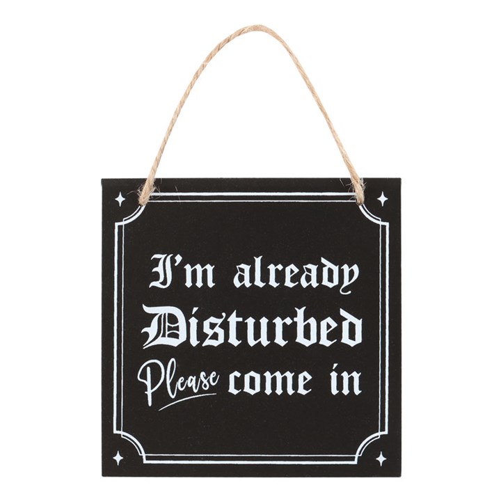 Show off your macabre sense of humour with this alternative take on a classic ‘Do Not Disturb’ sign. Features ‘I’m already disturbed, please come in’ text written in gothic lettering. Finished with a jute rope for easily hanging in the entrance of your dark lair.