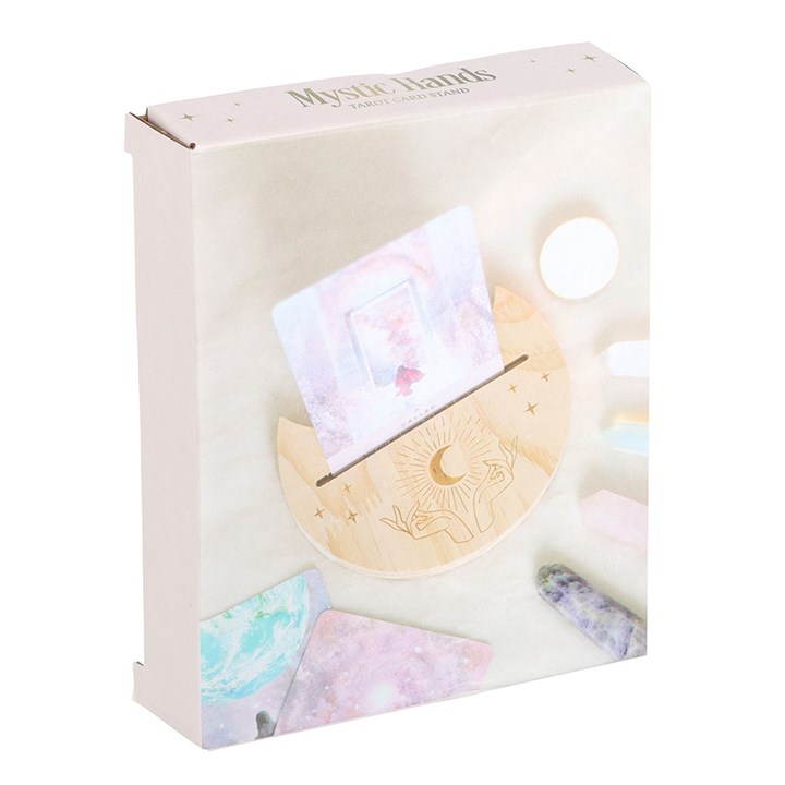 Display a daily tarot card reading with this wooden tarot card stand, allowing the meaning of the card to truly resonate throughout the day. Featuring a mystical hands design, it’s sure to add an element of spiritual significance to any space.