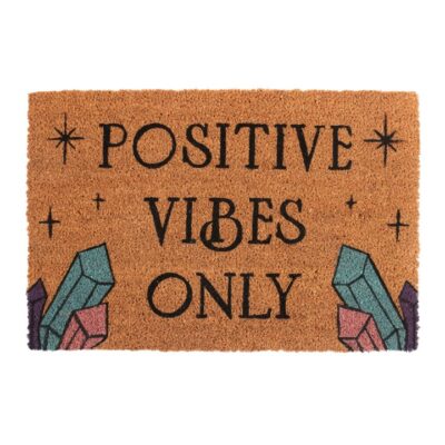 Welcome good energy into your space with this trendy doormat. Features ‘Positive Vibes Only’ text accented by magic crystals for promoting love and happiness. Design may fade in extreme weather. Suggested for sheltered and indoor use only.