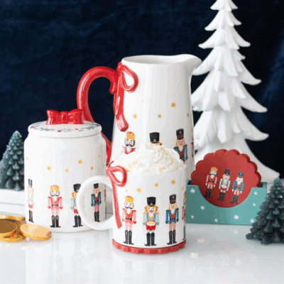 Add a touch of festive charm to your morning brew with this charming ceramic mug, featuring a nutcracker design and complete with a decorative bow on the handle. Perfect for sipping hot chocolate by the fire or enjoying a cosy cup of tea on a frosty morning, this mug makes a wonderful gift for loved ones or a unique addition to your own Christmas mug collection. 500ml capacity. Not suitable for microwave use.