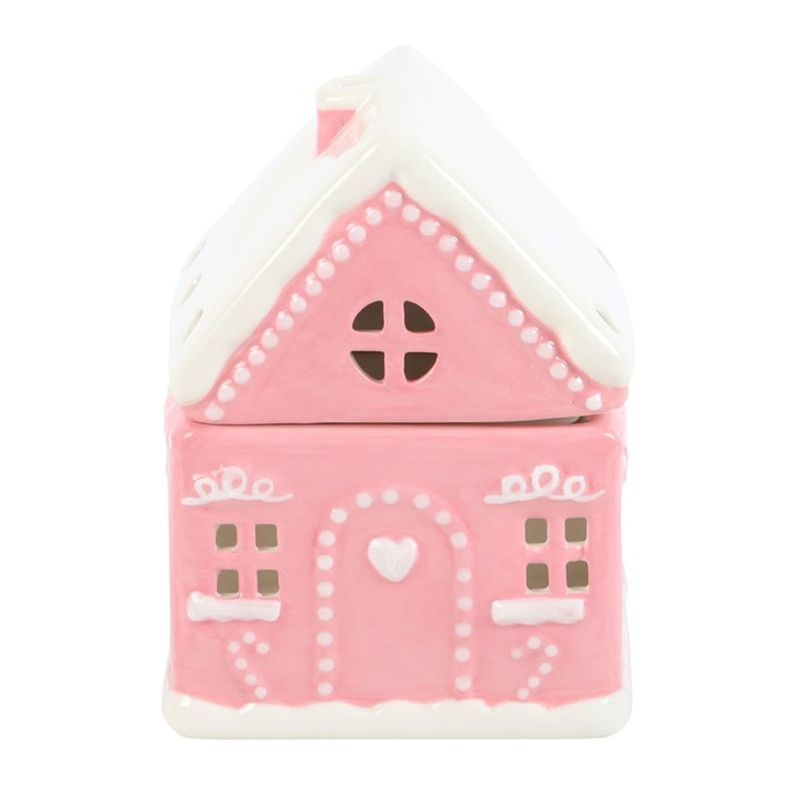 Who can resist this sweet, candy pink gingerbread house oil burner with snow frosting details. Remove the lid to add festive scents, place a lit tealight inside and watch this little home come to life with a warm, inviting glow. When not in use this oil burner becomes an ornamental detail that’s sure to become a beloved piece in any Christmas decoration collection. Recommended for use with fragrance oil diluted with water. Always remove the lid whilst in use.