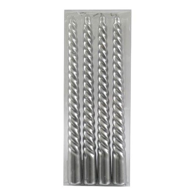 A set of 4 silver twist candlesticks for completing a festive Christmas table arrangement. 25cm tall.