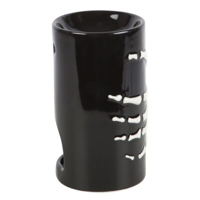 Fragrance the home with this bone-chilling oil burner. Features a skeleton hand wrapped around a black base that’s perfect for warming your favourite spooky-scented fragrances. Recommended for use with fragrance oil diluted with water.