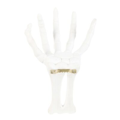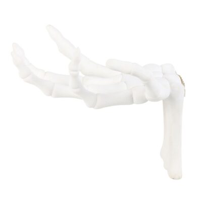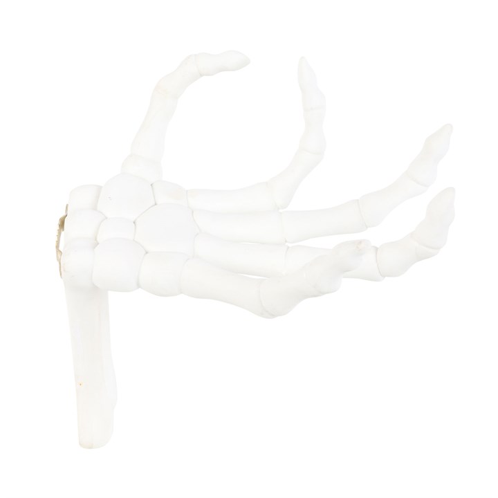 This skeleton hand wall hook emerges beyond the grave to do its ghostly duties. Perfect for holding keys, necklaces, LED candles and more, this bone-chilling piece is ideal for holding lightweight items in any spooky abode. Sawtooth hanger.