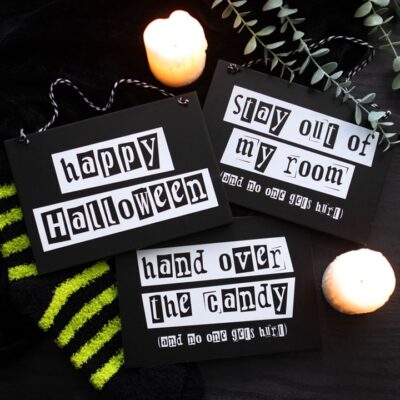 A must-have home accessory for anyone living with nosy siblings, parents or room mates. This hanging sign is perfect for hanging on doors with it’s warning that reads ‘Stay out of my room (and no one gets hurt)’. Designed in a black and white colourway for maximum impact.