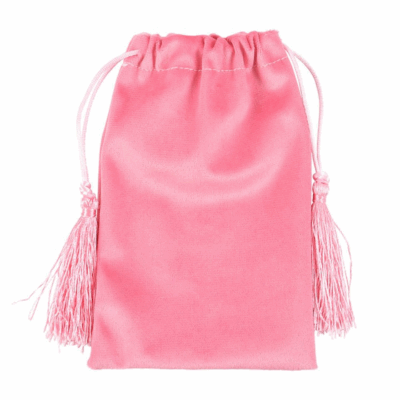 A soft pink velvet drawstring bag featuring a gold printed The Sun tarot card design. Ideal for storing tarot decks, crystals, or small accessories.