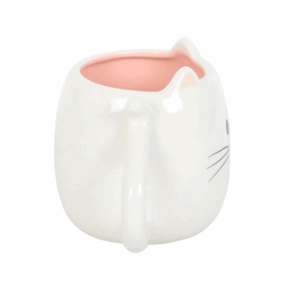 Lap up your favourite beverages with this adorable white mug shaped like a happy cat, complete with perky ears and a sweet whiskered face. A playful pick for feline fans. 500ml capacity. Do not microwave. Hand wash only.