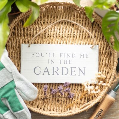 Let visitors know where to find you with this handy hanging sign which reads ‘You’ll find me in the garden’. Hang on the front door before heading out in the garden to work or relax. Created in a shabby chic, white wash design for an understated look.